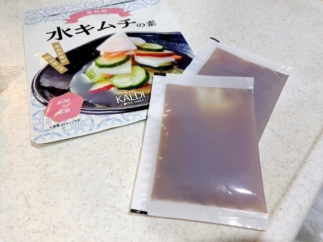 こちらです。【カルディ】水キムチの素 40g×2袋入り
