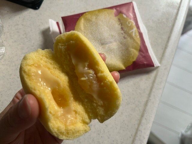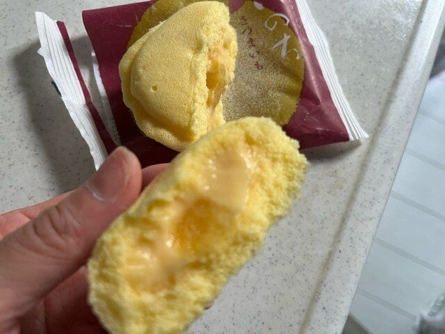 周りの生地は蒸しパンのようにやわらかくてふわふわ。カスタードクリームはそこまで甘くないので