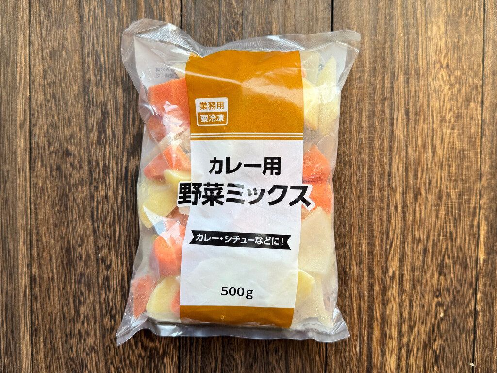 「若鶏ももブツ切り」と相性抜群なのが、同じく業務スーパーで購入できるカレー用野菜ミックスです。