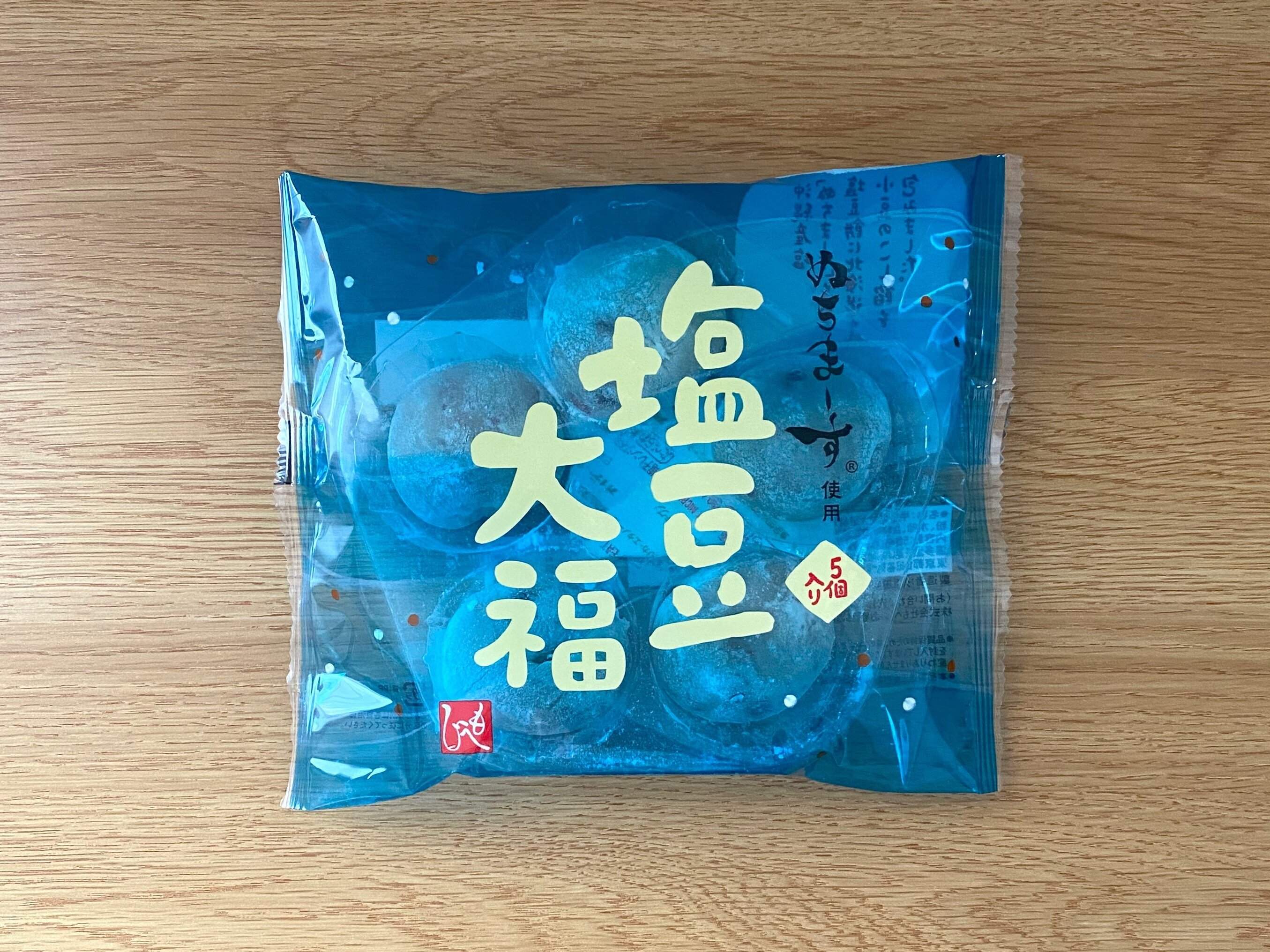 ミネラルが豊富な沖縄産塩「ぬちまーす」を使用した塩豆餅に北海道産小豆のこし餡を包んだ、小さめサイズの豆大福です。