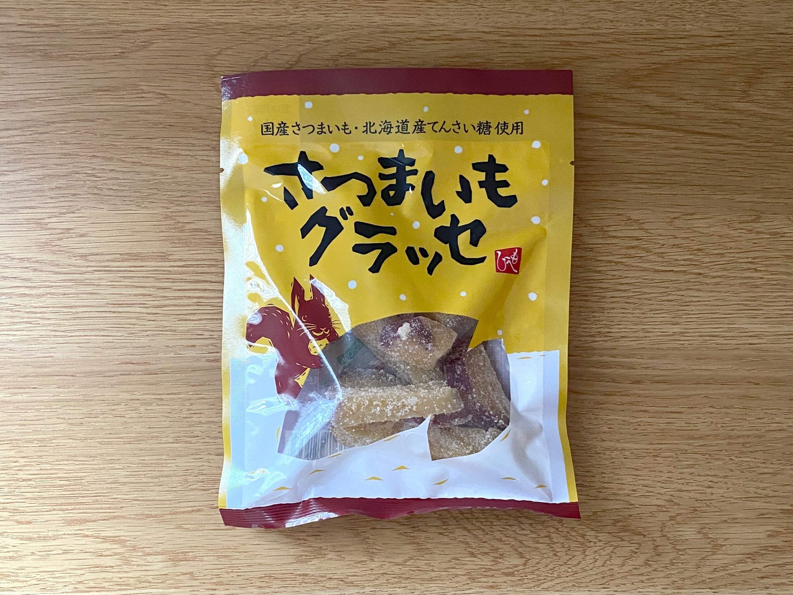 国内産のさつまいもを直火窯でふっくらと炊き上げ、蜜に一晩じっくりと漬け込んださつまいものグラッセ。原材料は茨城県産のさつまいも、北海道産の甜菜糖、還元水飴のみで、シンプルな味に仕上げられています。