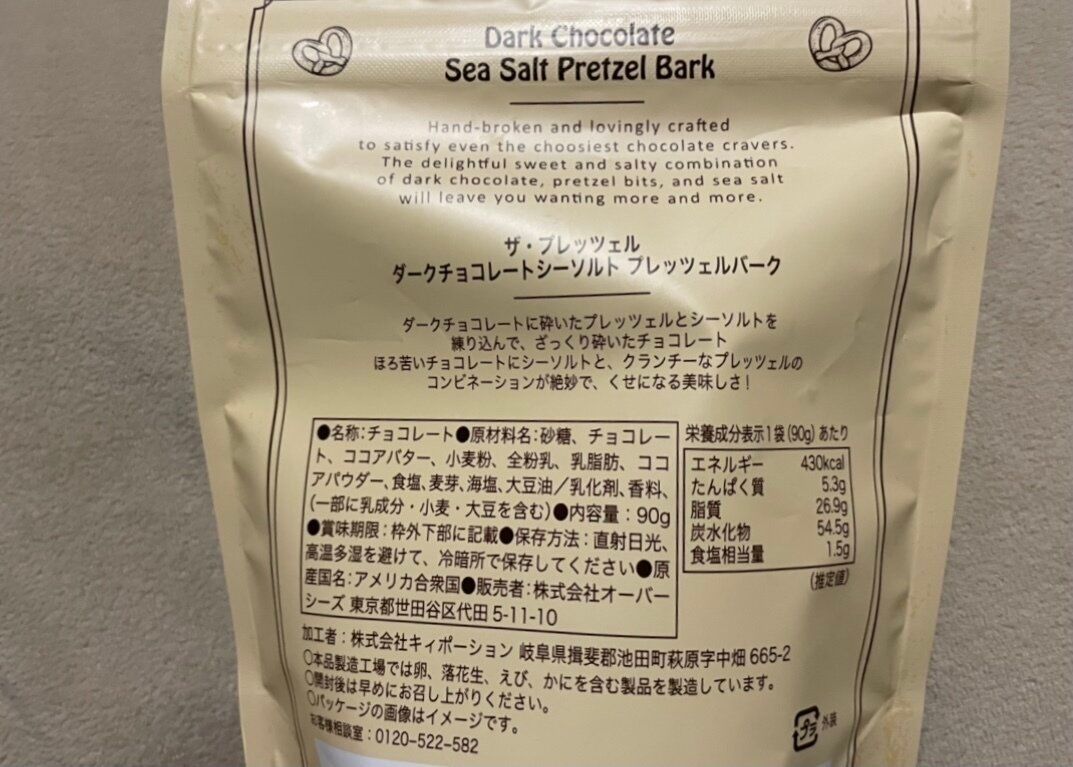 カルディは外国のものだったり、国内の珍しいものだったり、幅広く取り扱っていて見ているだけでも楽しいですよね。今回私が見つけたのは「ザ・プレッツェル ダークチョコレートシーソルトプレッツェルバーク」。SNSでおいしいと話題になっていたので、早速買ってみました。