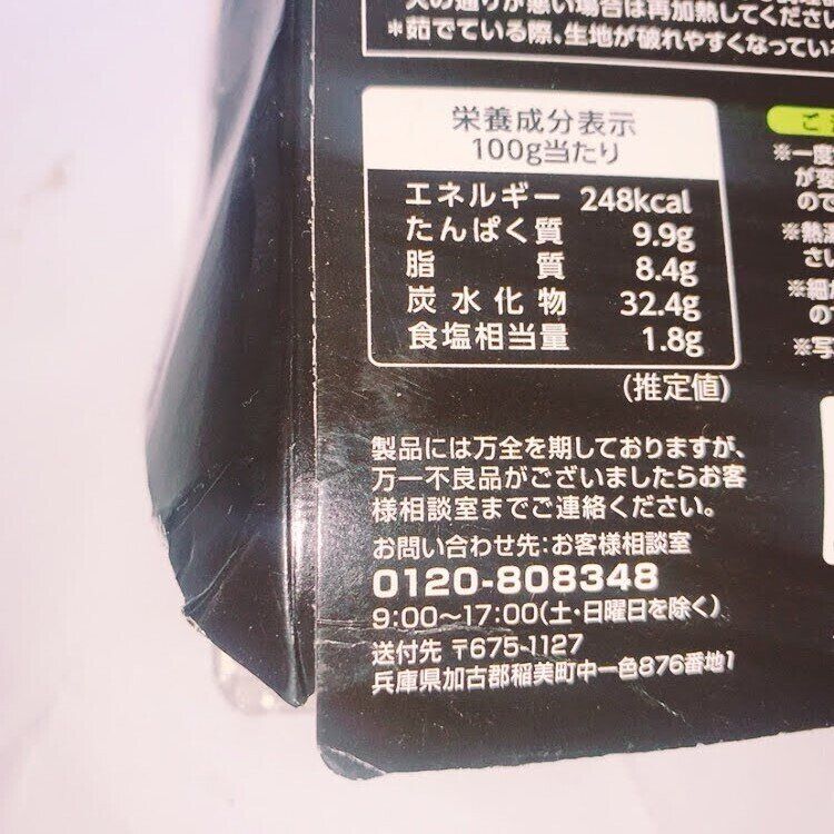 原材料名:デュラム小麦のセモリナ、リコッタチーズ、液全卵、バジル(バジル、植物油脂、食塩)、パン粉、ホエイパウダー、モッツァレラチーズ、ペコリーノチーズ、チーズ、食塩、パルメジャーノ・レッジャーノチーズ、植物油脂/香料、(一部に卵・乳成分・小麦・牛肉を含む)