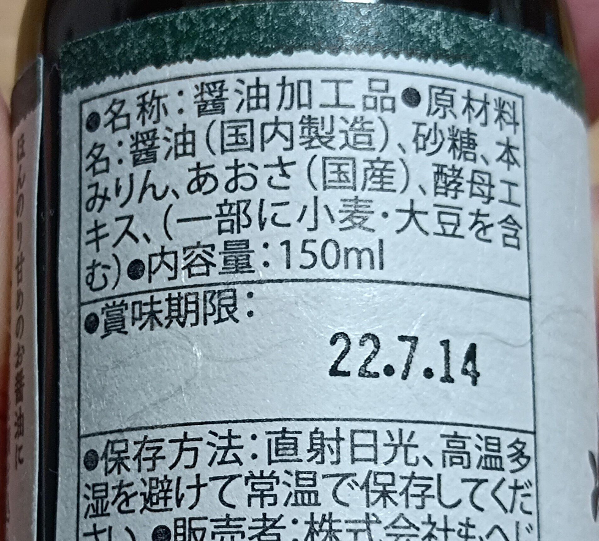 商品の原材料を見てみると、あおさ以外に砂糖や本みりんなどが含まれた醤油加工品に分類されていました。