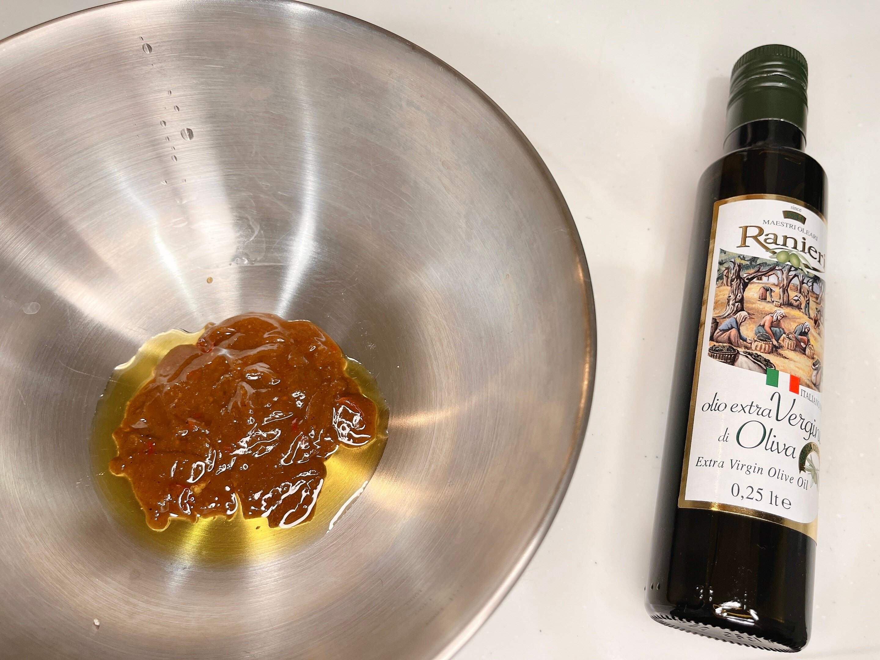 茹でたパスタに本品とオリーブオイル大さじ2杯入れ一緒に混ぜるだけで完成です。