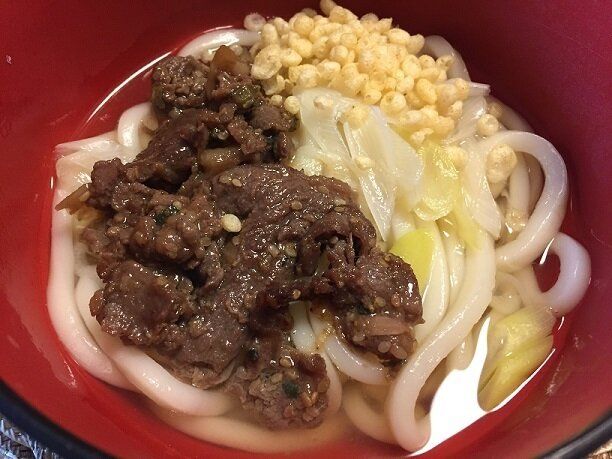 炒めたプルコギビーフを温かいうどん、もしくは冷たいうどんにトッピングするだけ。我が家の子どもたちはこれが大好きでよくリクエストされます。