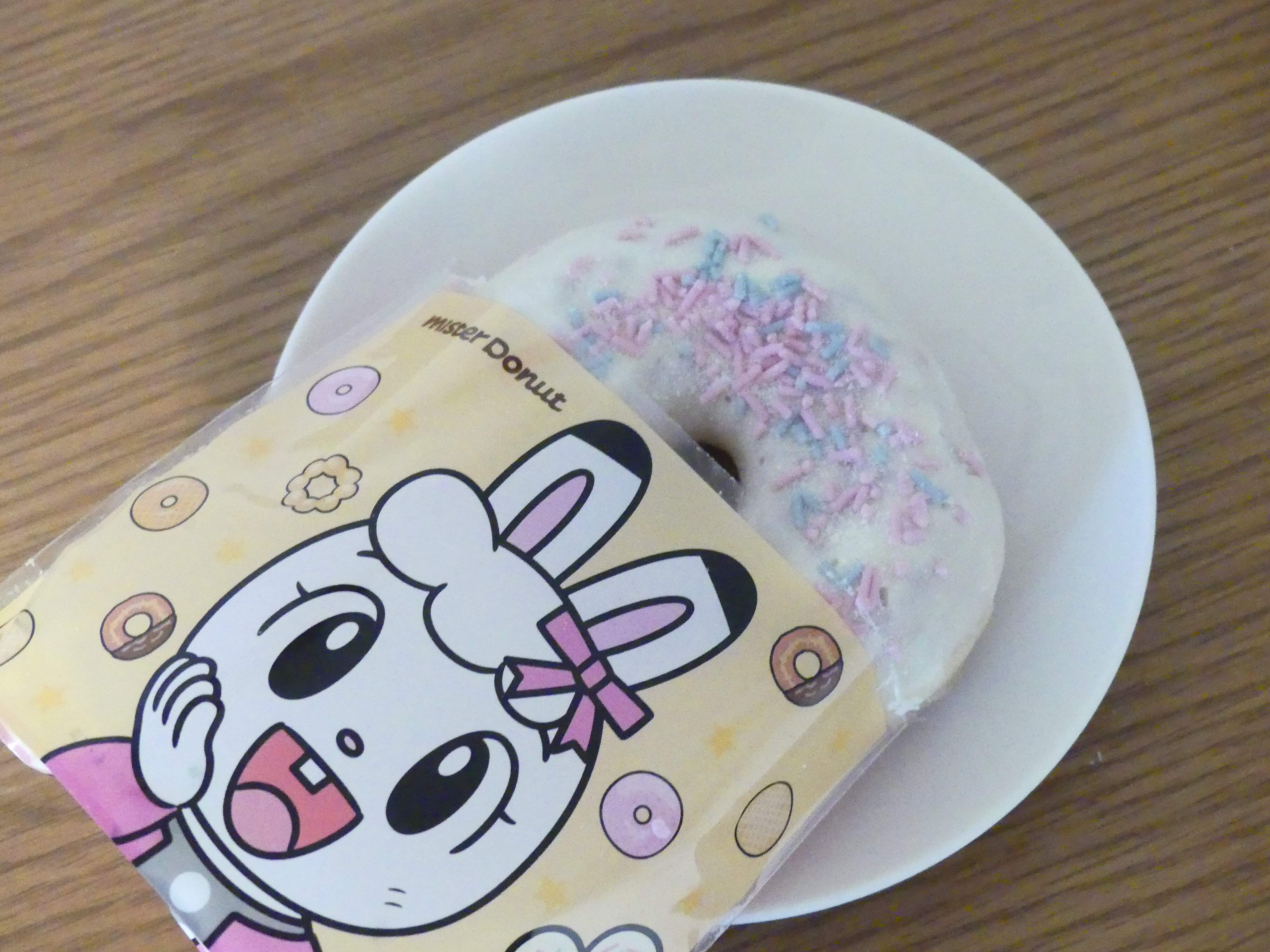ミスドのレギュラーメニューにはないホワイトチョココーティングのドーナツだったので、みみりんのかわいいドーナツに飛びついて買ってしまいました。
