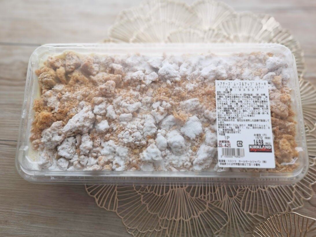 こちらがコストコに登場した新作スコップケーキ、『レアチーズムース&アップルケーキ』です。