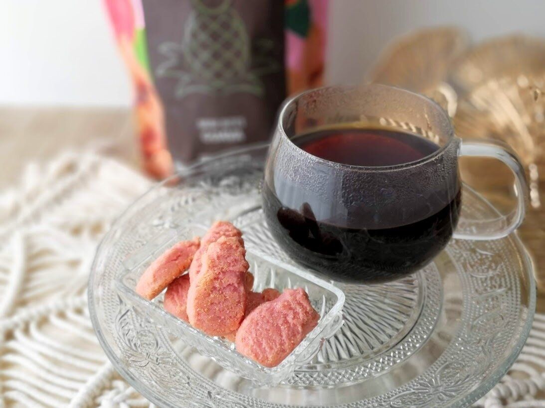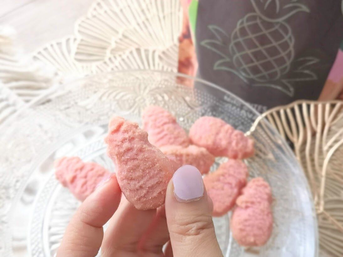 手に取りやすい、一口サイズのクッキーなので、とっても食べやすく食べ始めると止まりません。今回は淡いピンク色で、見た目にもとってもキュートですよね!