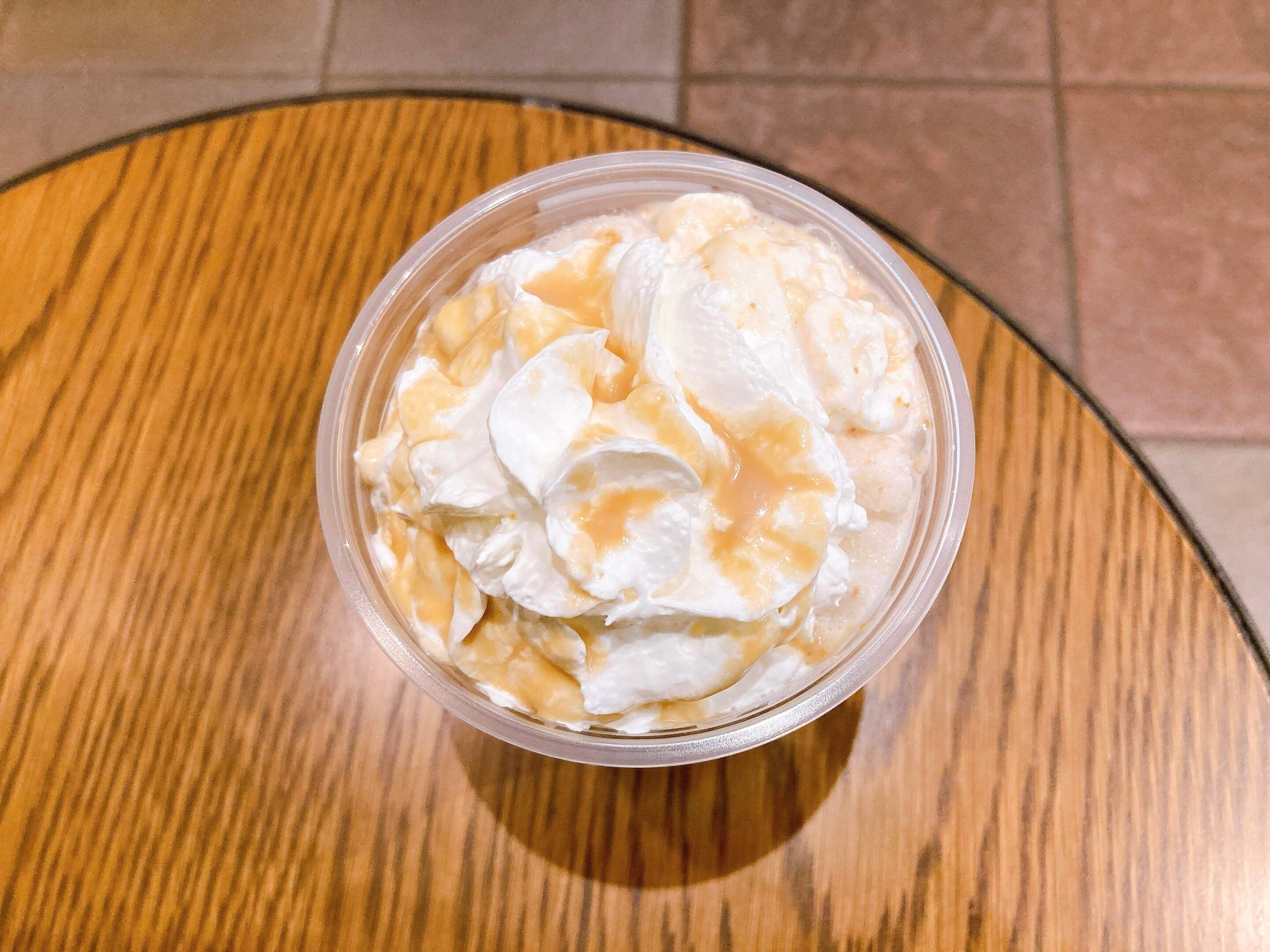このフラペチーノはミルクの変更ができないのですが甘党さんにおすすめカスタムは、キャラメルソースの追加や、ホイップクリームを限定の生チョコレートホイップに変更です。