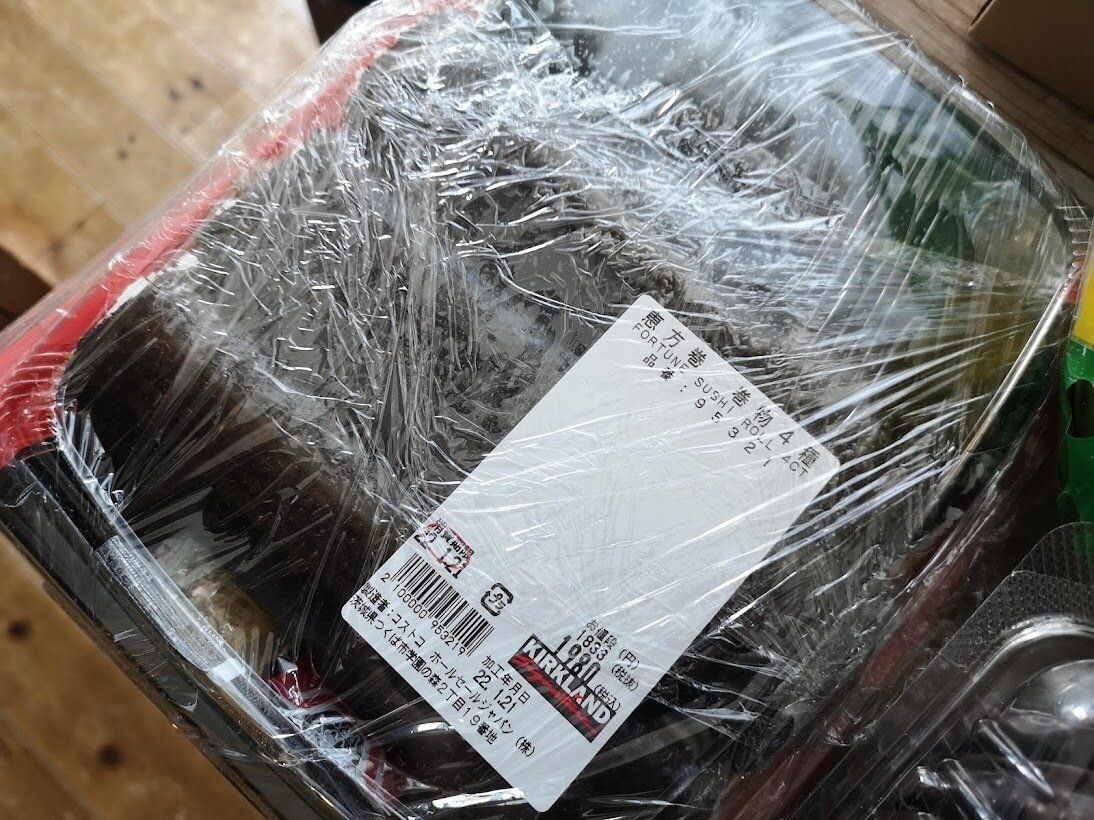 発売当日に購入した、2022年版の恵方巻きです。かなり大振りな太巻きが4本入っています。ややパックのしまりが悪いほどだったので、帰る途中で開いてしまっても困る!ということで、レジの方にラップを巻いていただきました。