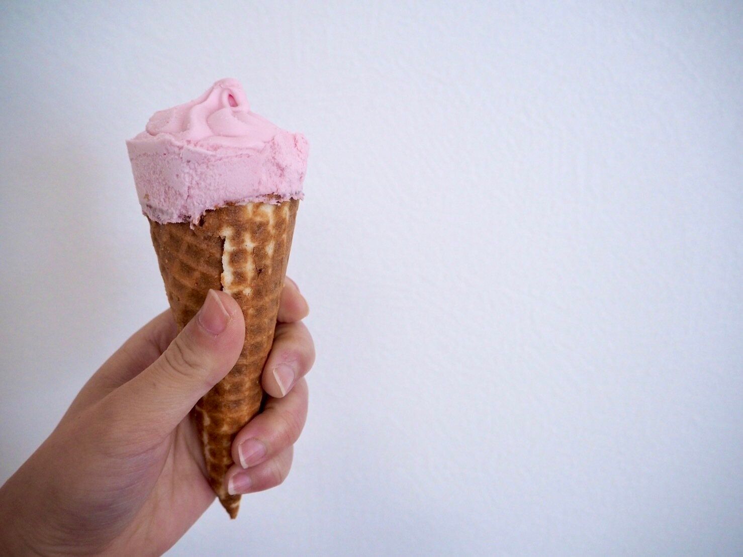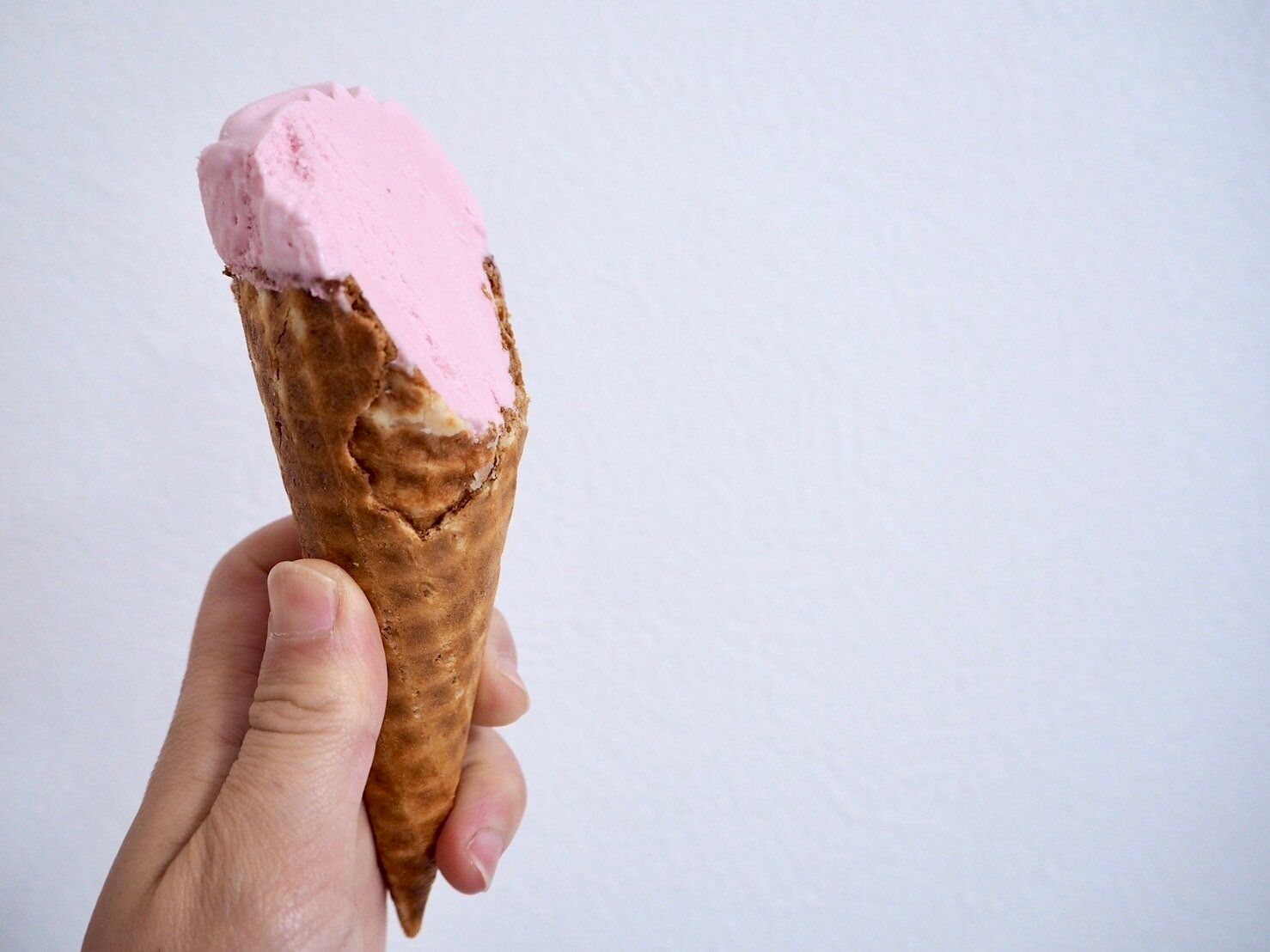 コーンの先までなめらかな苺アイスがたっぷり。