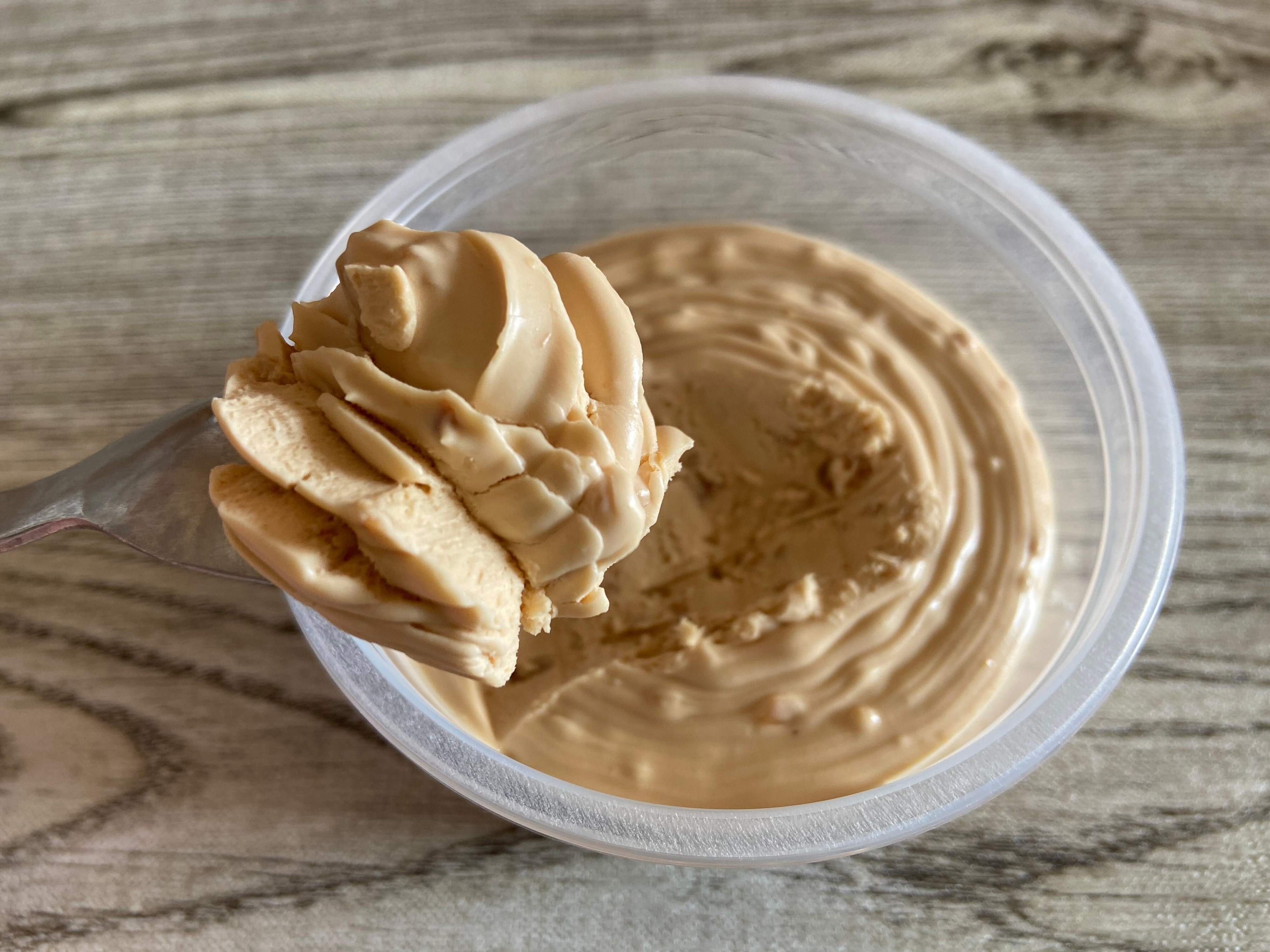 スプーンですくってみると、柔らかくホイップのように軽さがあります。アーモンドのつぶつぶがたっぷり入っているのがわかり、香ばしい良い香りが広がります。