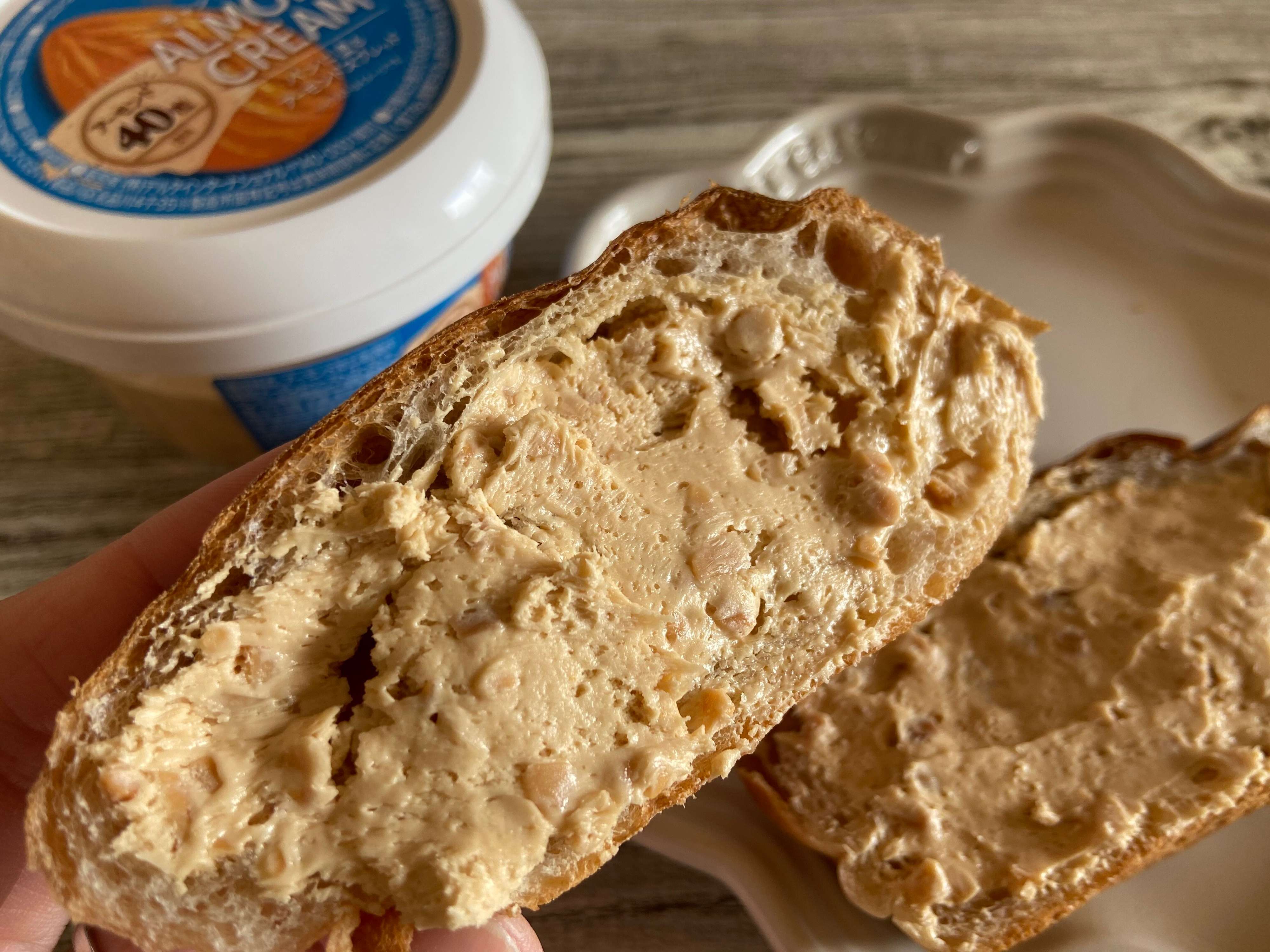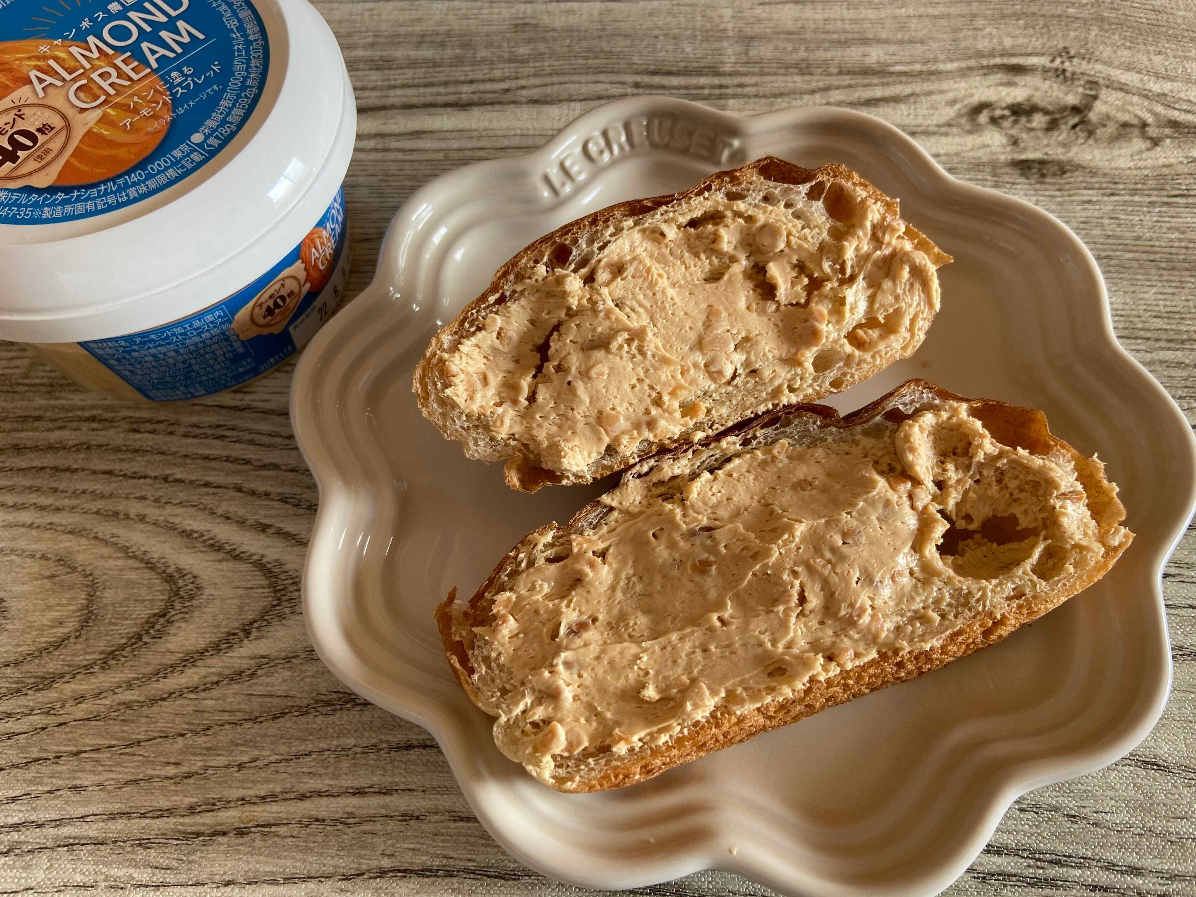 アーモンドのつぶつぶがたっぷりで香ばしく、アーモンド好きにはたまらない濃厚なアーモンドスプレッド。パンを軽くトースターで焼いてから塗ると、クリームがじゅわっとパンに染み込み、こちらもおいしくておすすめ!