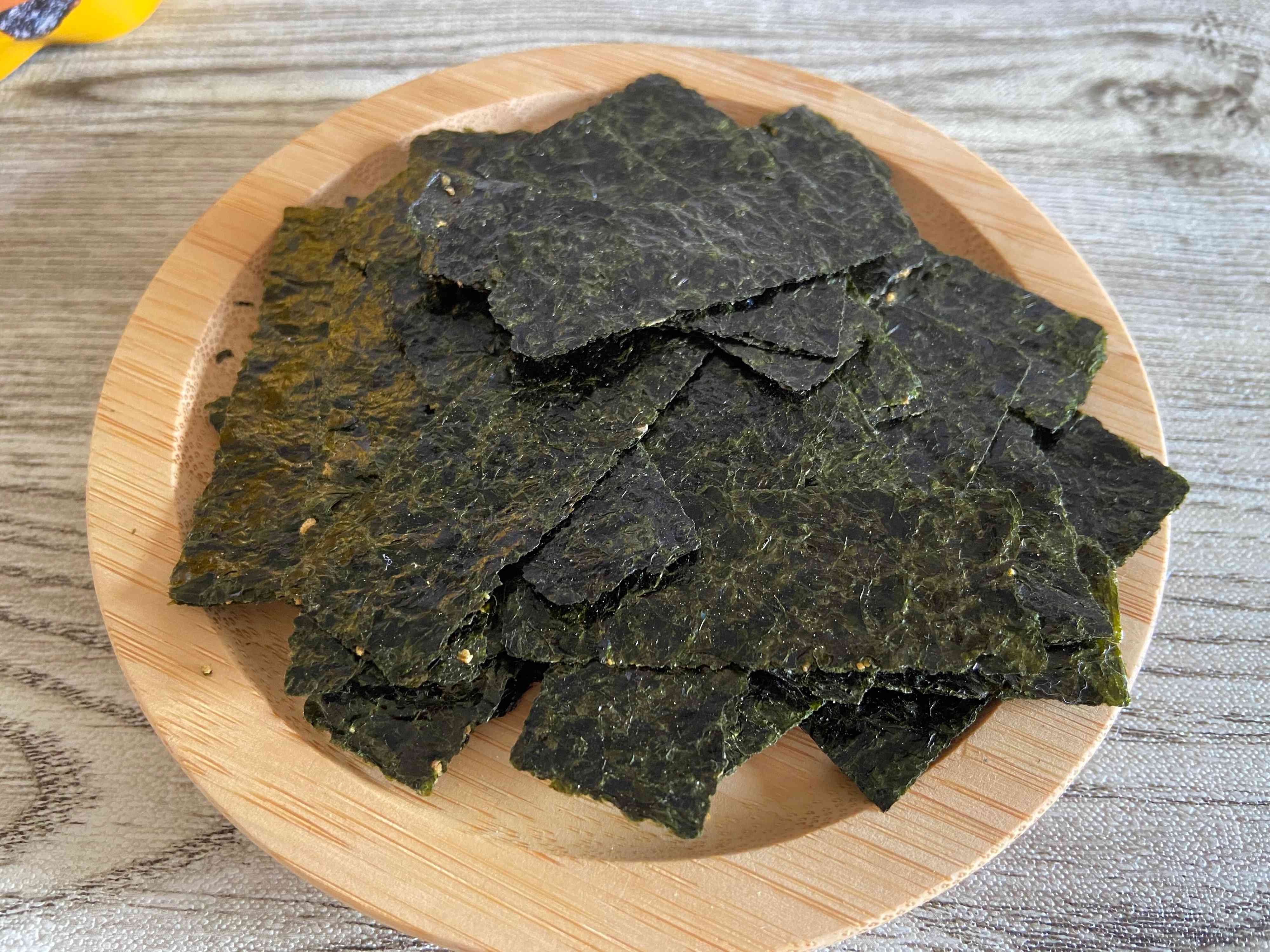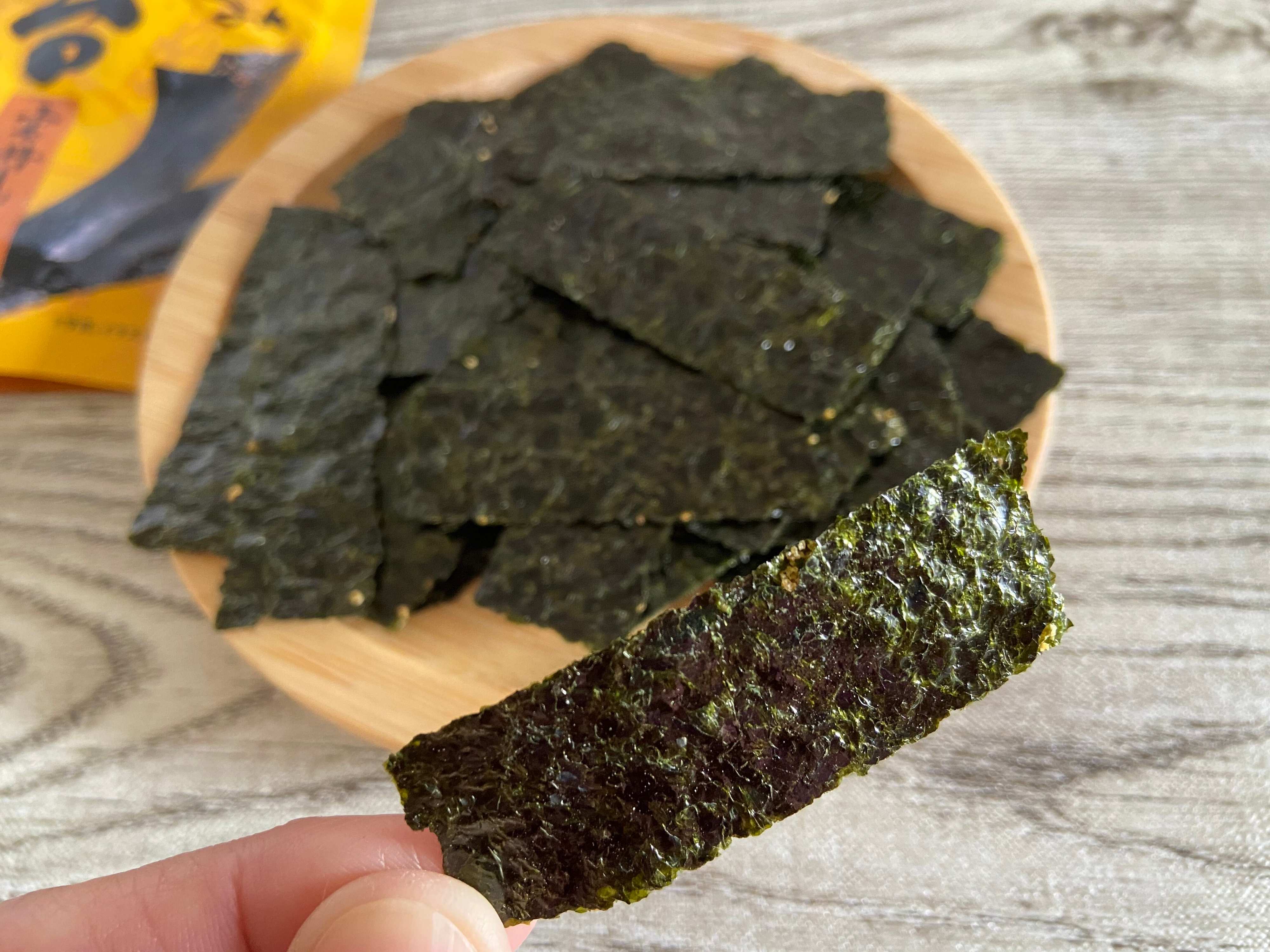 海苔が2枚重ねになっていて、その間にうに顆粒がサンドされていました。食べてみると、パリパリの海苔の風味にしっかり濃い醤油味がついて、後味にうにがほんのり香ります。とってもおいしい!