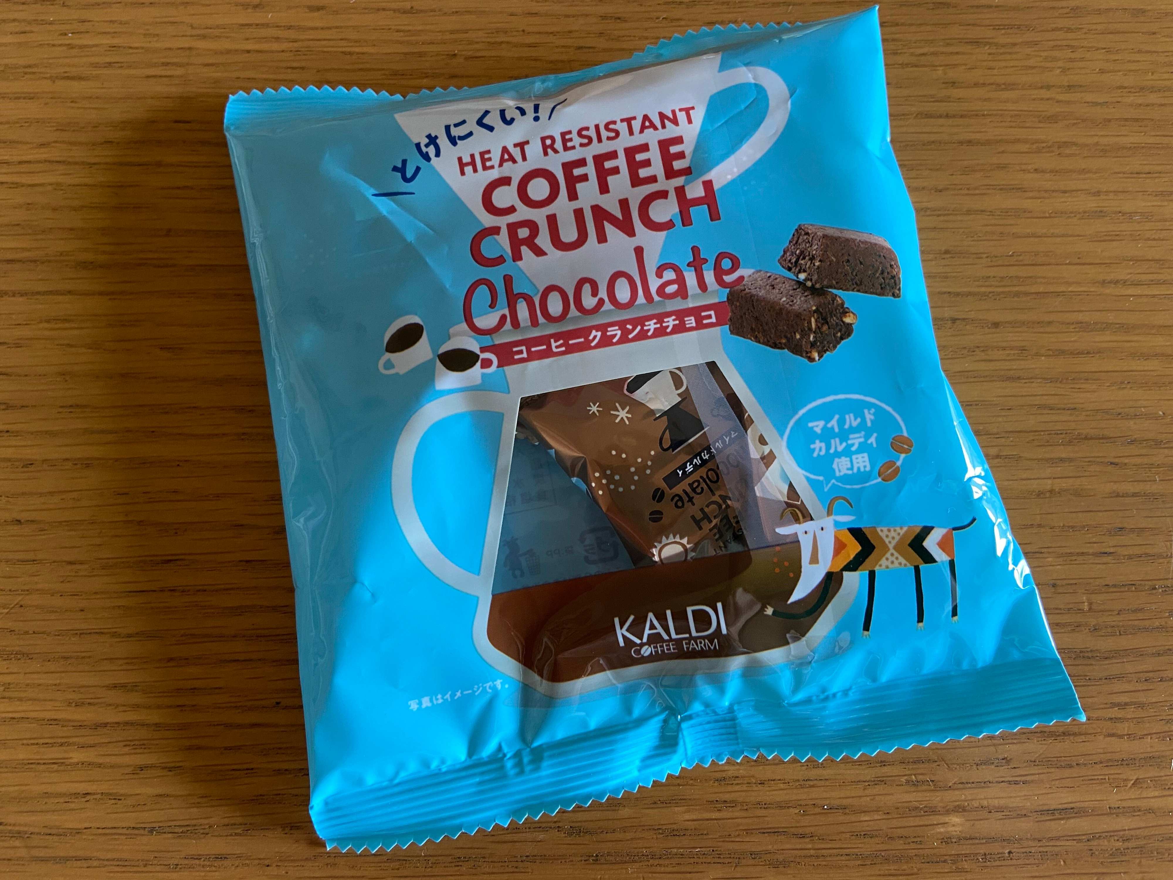 カルディのチョコレートコーナーでおいしそうな商品を発見!「とけにくいコーヒークランチチョコ」(購入時:253円)です。