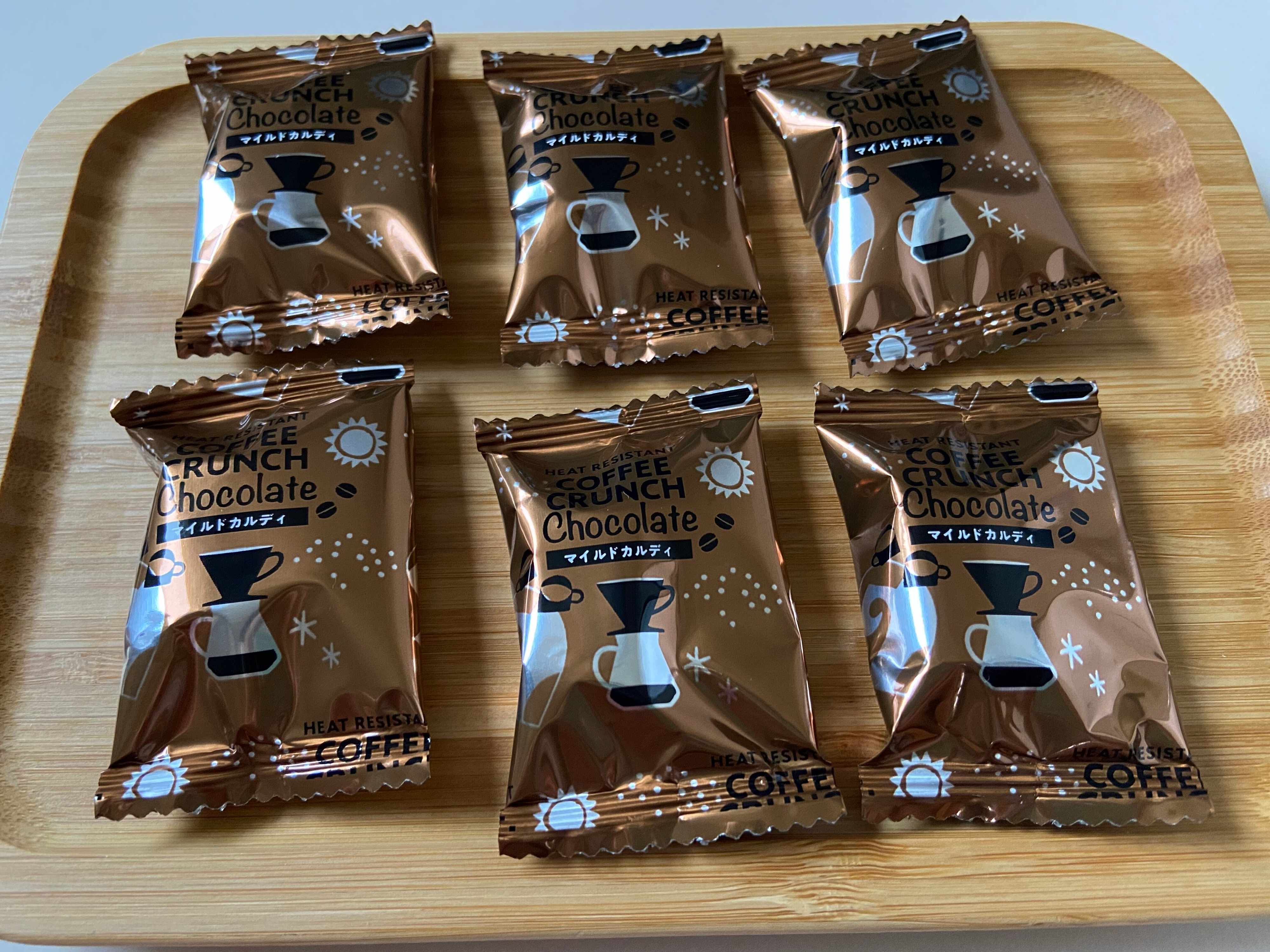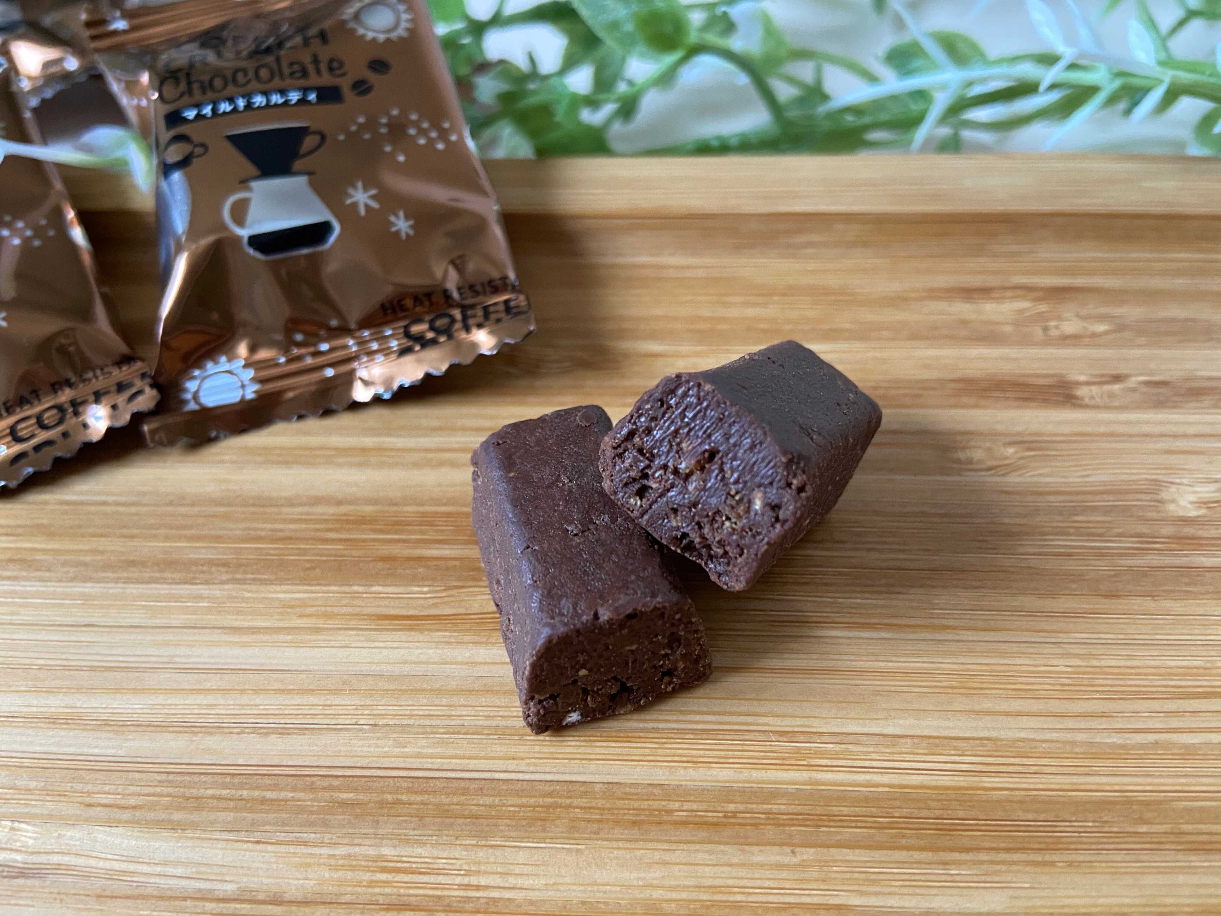 食べてみるとコーヒーの香りが鼻に抜けて香ばしさとほろ苦さがほんのり感じられます。チョコレートは甘すぎず、コーヒーとの相性も抜群。カリカリザクザクのクランチが食感のアクセントになり、とてもおいしいです。