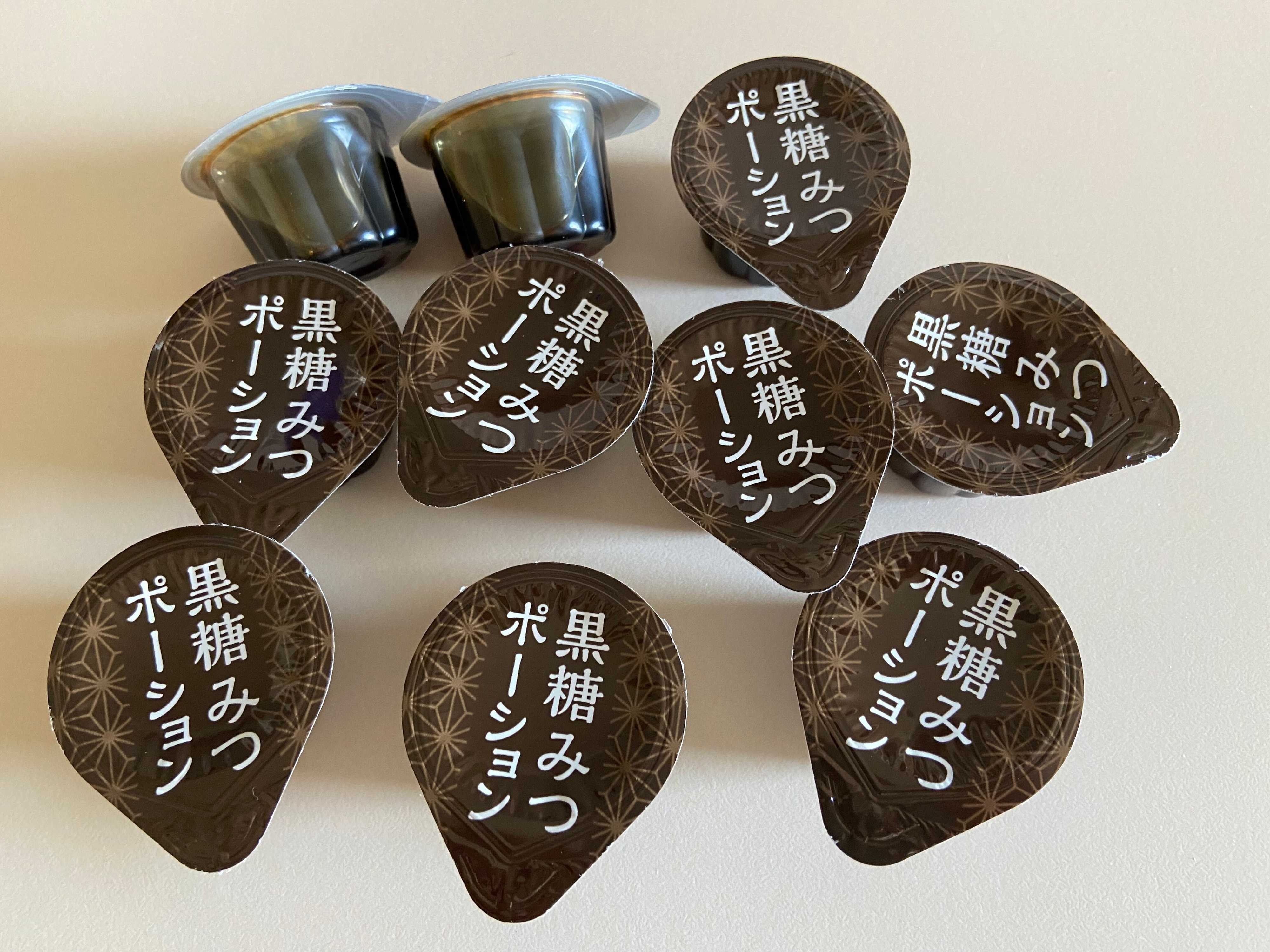 カルディの使い勝手抜群の黒糖みつポーション。黒糖が大好きな方なら、常備がおすすめ!パッケージにはパンケーキやあんみつにも、と記載がありますが、筆者はバニラアイスにかけるのもお気に入りです。