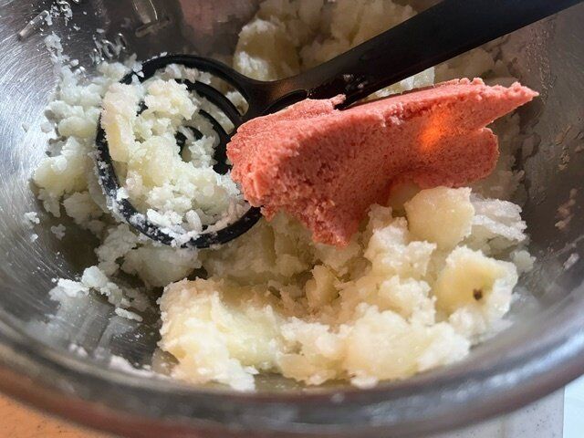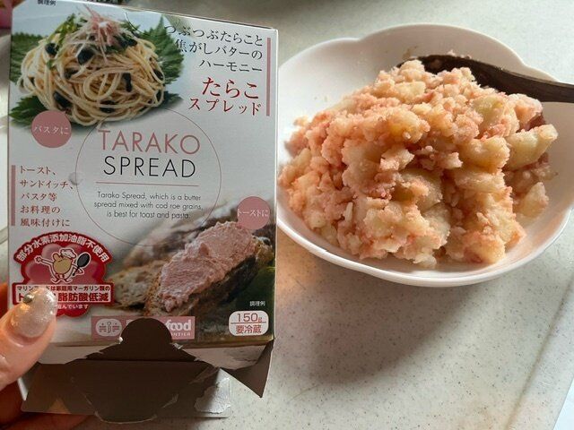 ほくほくに茹でたじゃがいもに合わせてみました!じゃがいもが熱いうちにたらこスプレッドをいれれば