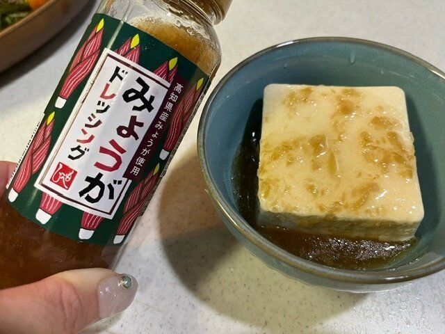 今回はドレッシングとして。でも、刻んだみょうががたっぷり入っているのでみょうがの味がすごくて