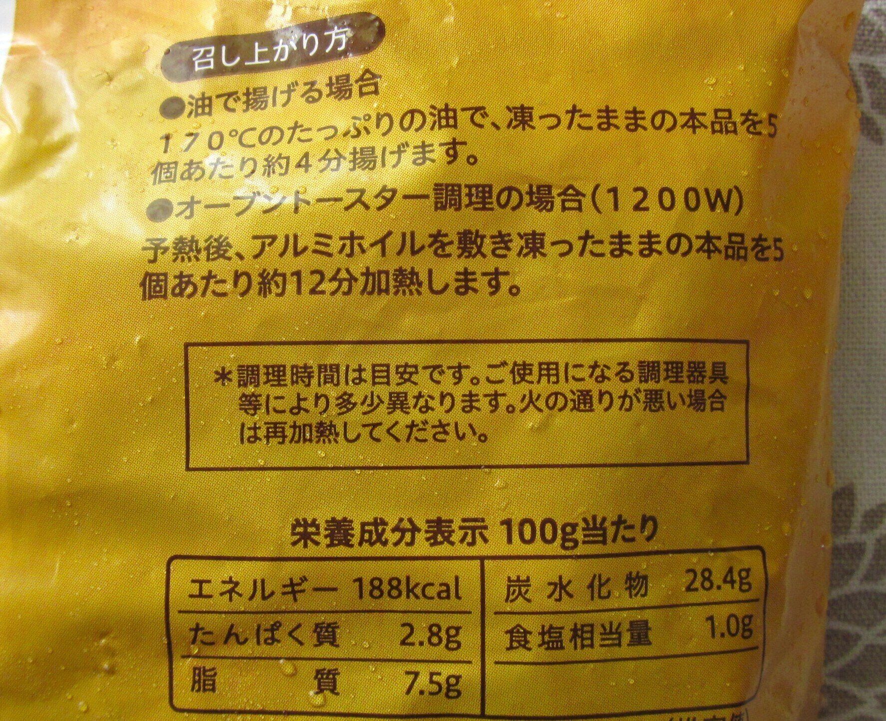 価格は税込449.28円です。1袋に10本入っているため、1本あたりおよそ45円となります。調理方法は油で揚げるだけ。170~175度の油で3分30秒~4分30秒揚げて完成です。