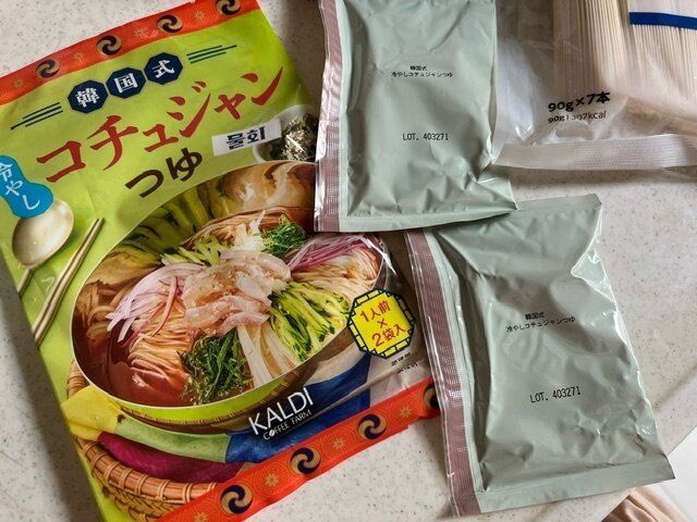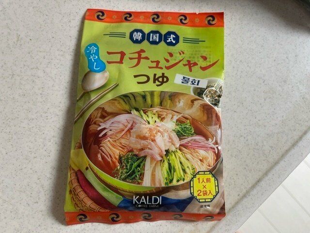 こちらです。韓国式 冷やしコチュジャンつゆ 1人前×2袋入り 税込み213円
