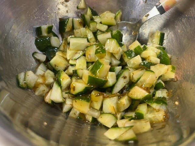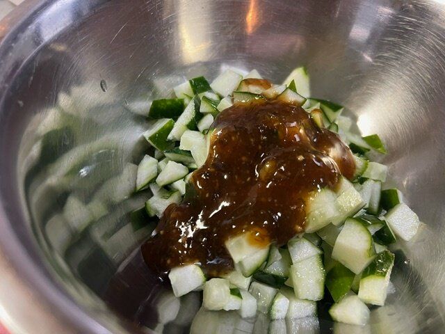 きゅうり一本は5ミリ角に刻みます。ちょっと大きかったのですが、、、