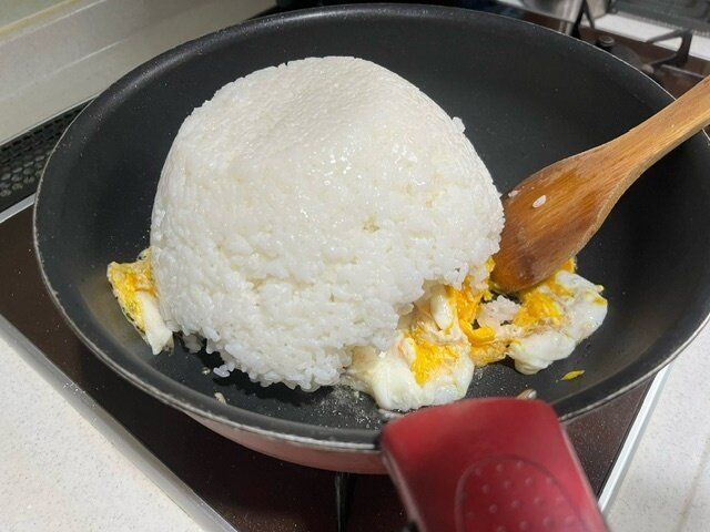 具材はシンプルに卵とネギだけにしました。いつものチャーハンにはハムやチャーシューなどを