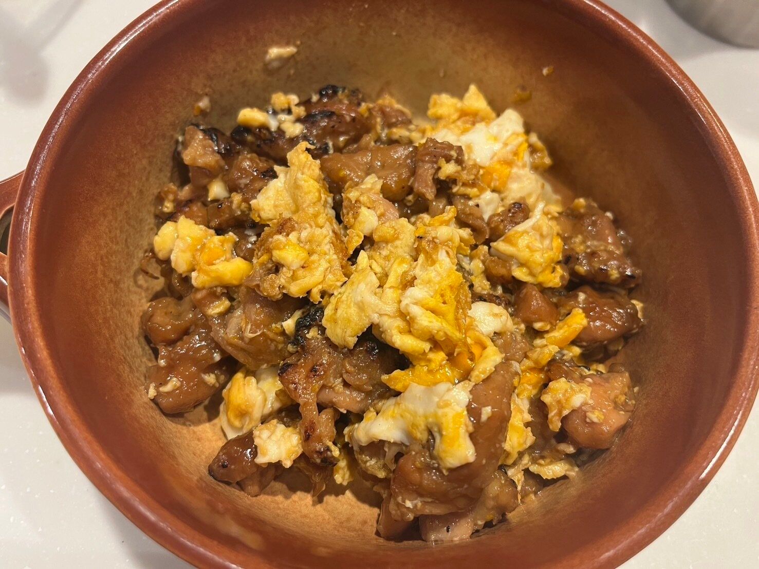 とても簡単で、焼き鳥を串からはずし卵でとじるだけ!