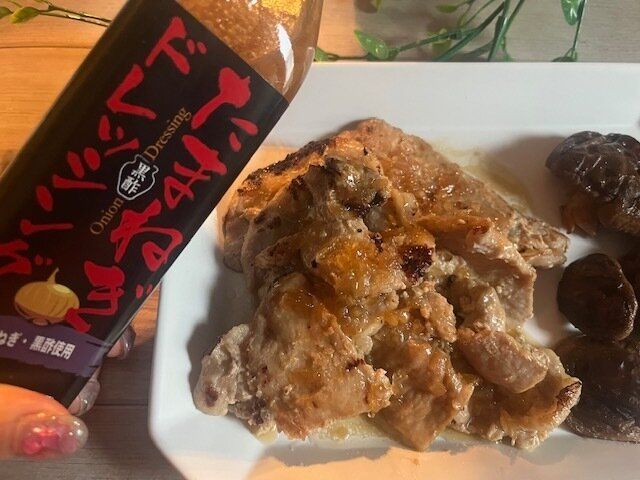 そして私のおすすめとしてはこの黒酢たまねぎドレッシングを肉の下味として