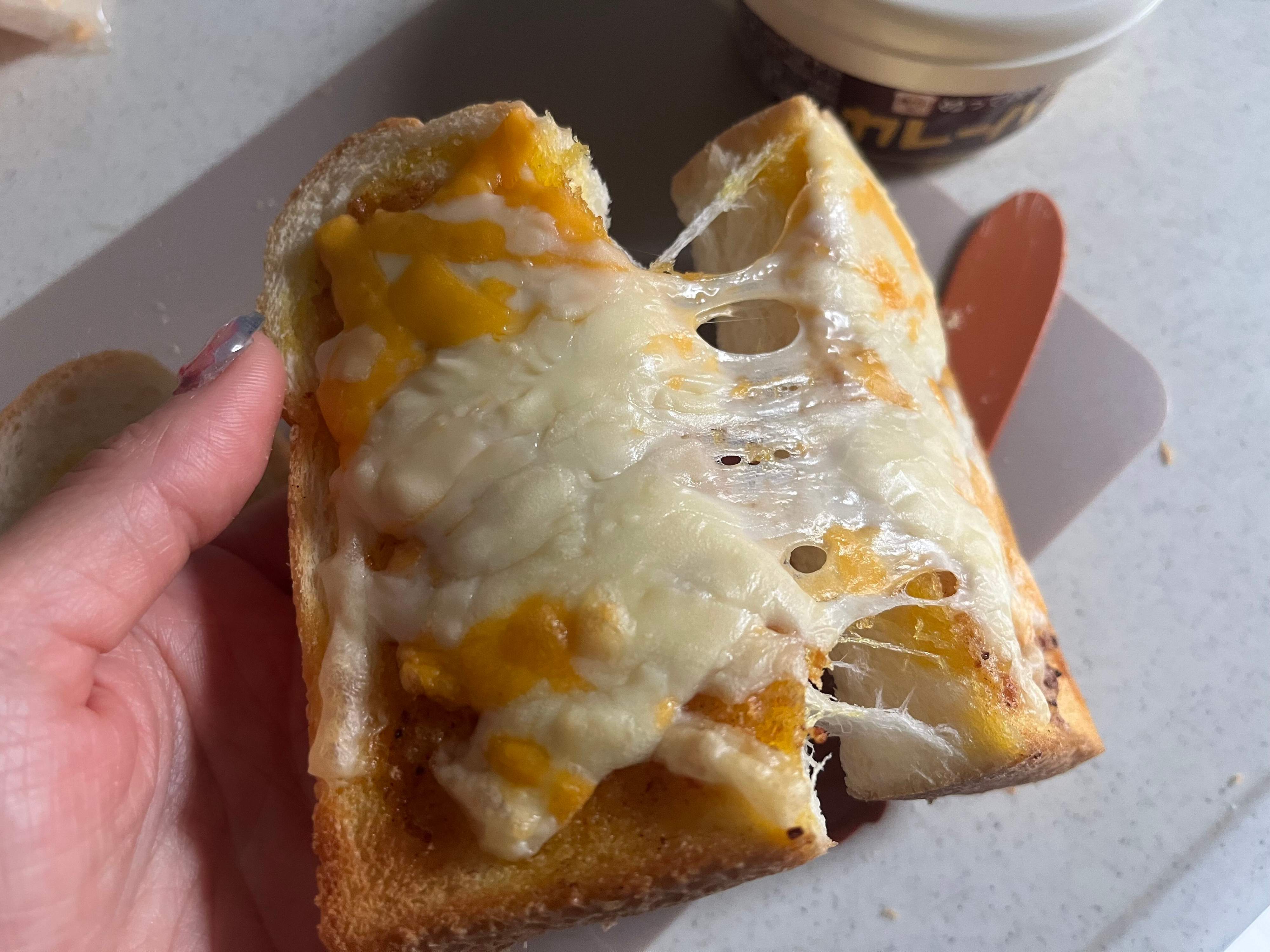 はい!できあがりです!これは本当においしい。かりかりのペーストの上に溶けるチーズが