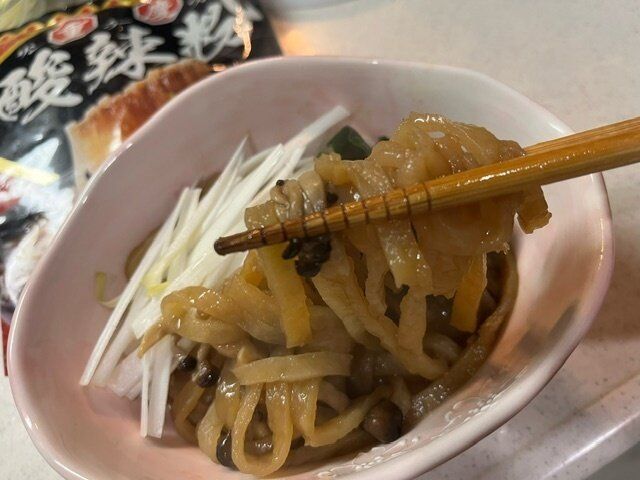 麺は普通の春雨と比べるとかなり太めです。色も少し茶色がかっています。