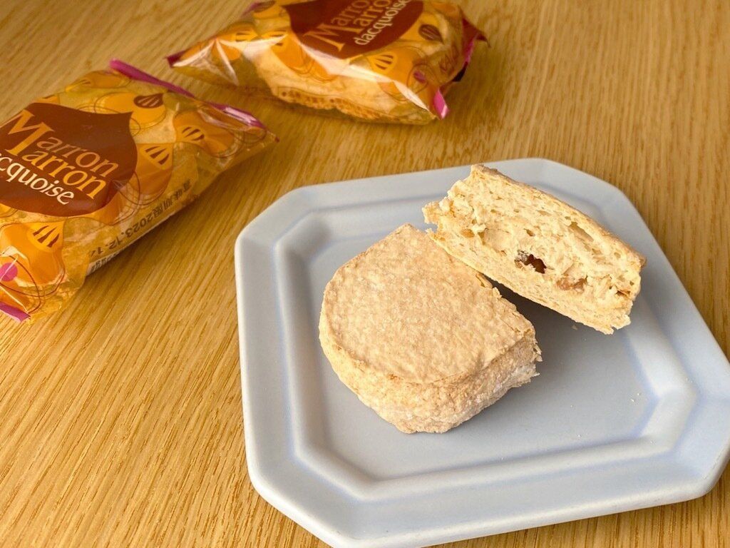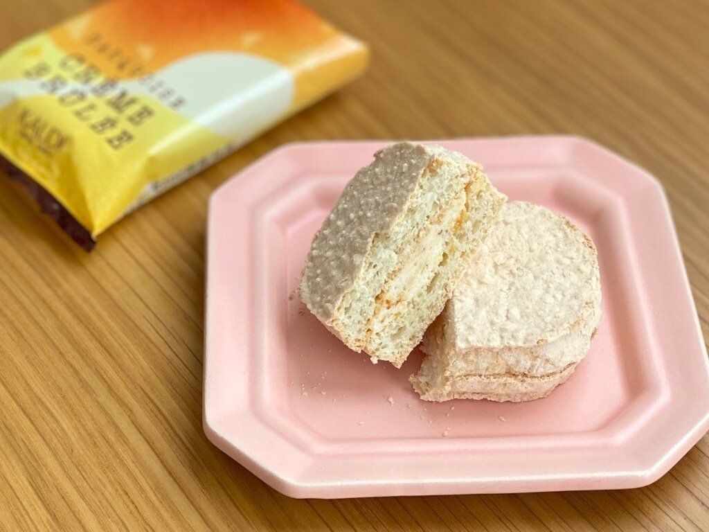 カルディのレジ横コーナーに再登場した「マロンマロンダックワーズ」は、アーモンドプードルを混ぜ込んだ生地でマロンクリームをサンドした、カルディオリジナルの焼菓子です。
