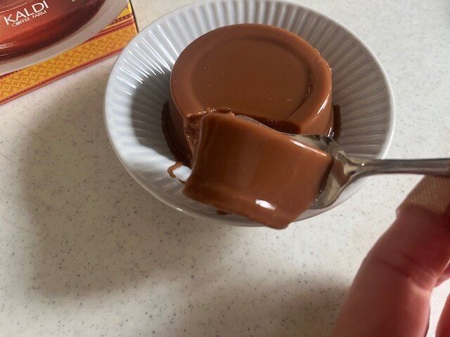 茶色のプリンは珍しくはないのですが、ココナッツミルクプリンと思っていると少し驚きます。
