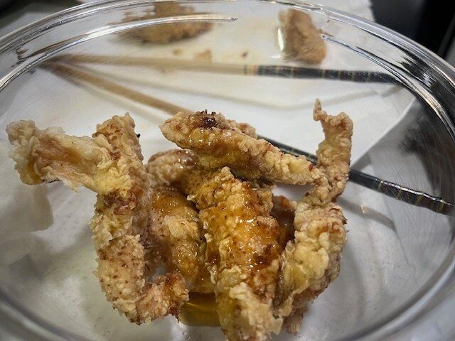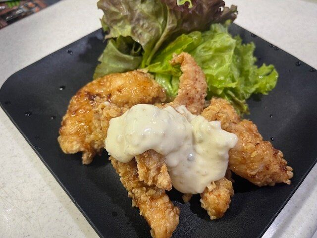 美味しそう!食べてみると甘酢だれがしっかりと絡んでいてそこに酸味が効いたタルタルソースが本当によく合う。