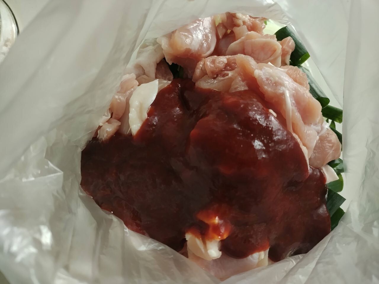 パッケージ裏には「具材とタッカルビの素をボウルに入れて混ぜ合わせてから焼く」となっていますが、筆者はビニール袋に具材とタッカルビの素を入れて、袋の上から揉んで混ぜています。そのままフライパンに入れて焼けば、洗い物が減らせます。