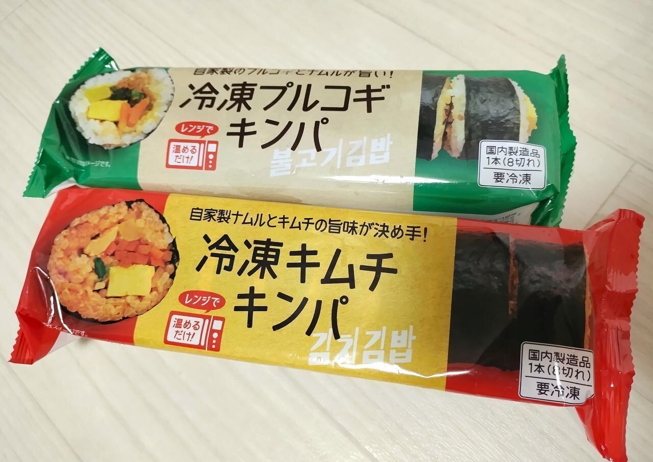 それがこちらの「冷凍プルコギキンパ」と「冷凍キムチキンパ」です。価格はそれぞれ税込354.24円(※2025年4月筆者購入時)で、電子レンジで温めるだけでキンパが楽しめますよ。