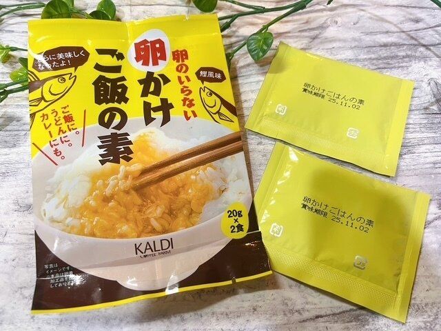 こちらです!【カルディ】「卵のいらない卵かけご飯の素」20g×2食