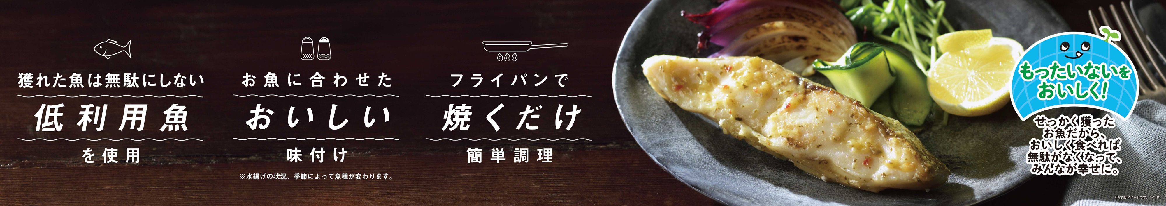まとまった量が漁獲できないことやサイズが不揃いで加工しづらいといった理由で、そのほとんどが商品化されずに廃棄されてしまう低利用魚を使用し、食品廃棄物の削減を目指して開発されている「もったいないお魚シリーズ」。第3弾の「黒鯛」はくせが少なくどのような味付けにもマッチする魚で、おかずにもおつまみにも弁当にも合う2種の和風ソースで仕上げられています。