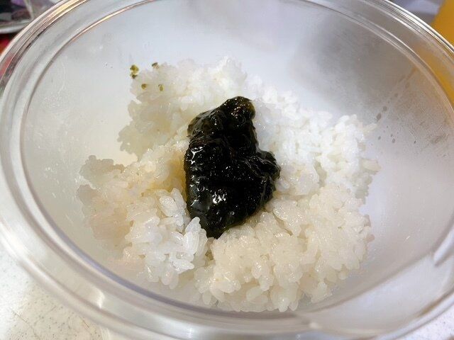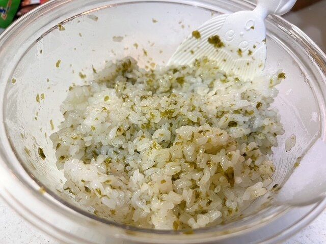 ごはん200g(お茶碗1杯程度)にこの、「韓国のり風ごはんの素」を混ぜ込みます。