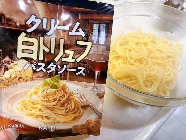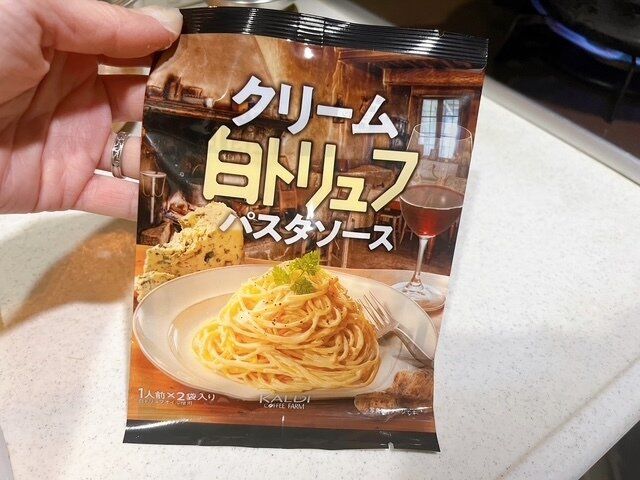 こちらです。「クリーム白トリュフパスタソース」1人前×2袋 税込み198円