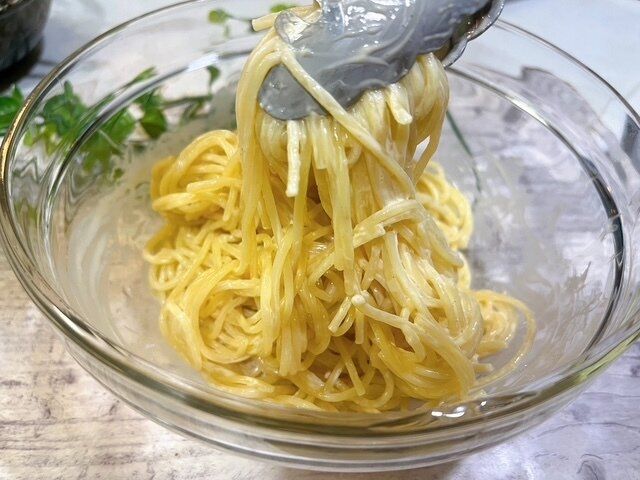 パスターソースとからめる際に、オリーブオイルを少しいれると麺がからまずしっかりと