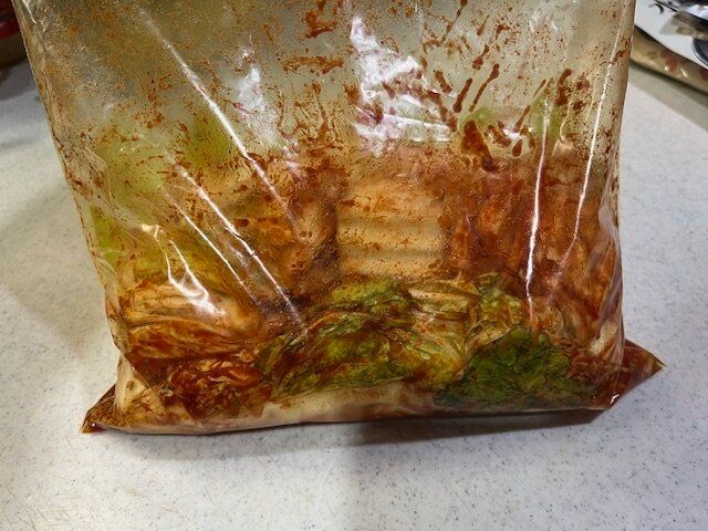 袋の外からシャカシャカもんで、全体をなじませました。このまま冷蔵庫へいれます。