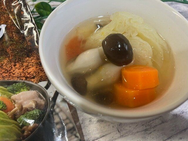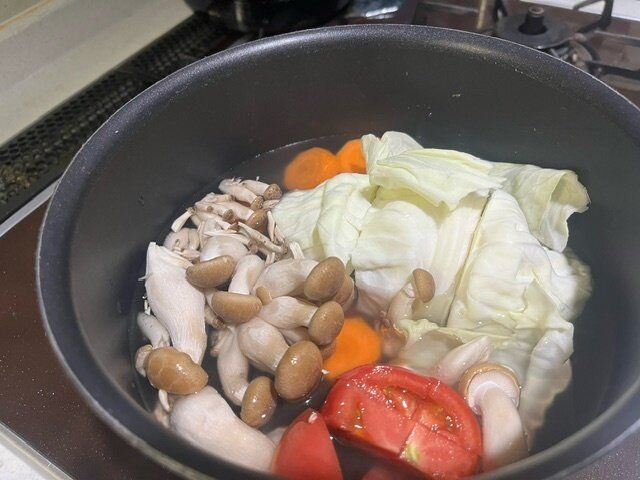 どこかポトフみたいな感じがしたので、野菜をたっぷりいれてさらに、キャベツは結構大きめのまま入れました。