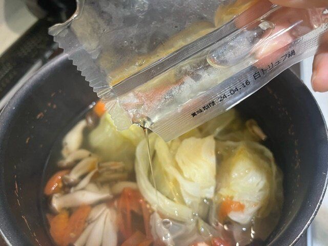 あとは普通の鍋の作り方と同じで、好きな具材を入れて煮込むだけ。
