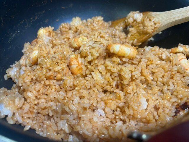 ごはんと「ナシゴレンの素」が混ざったら出来上がり!本当に簡単です。