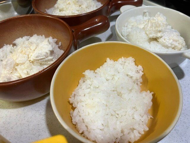 今回ごはんの方には味付けをまったくしませんでした。普段はバターライスにしたりするのですが
