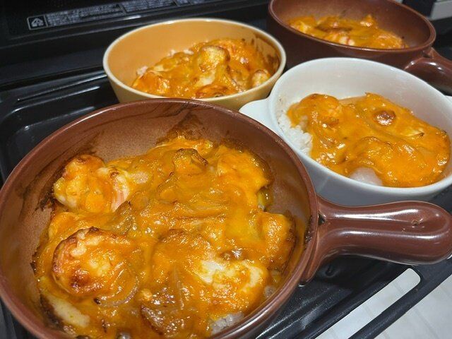 私はごはんとソースの間にたっぷりのチーズを入れてから焼きました。