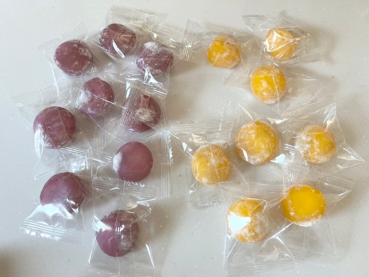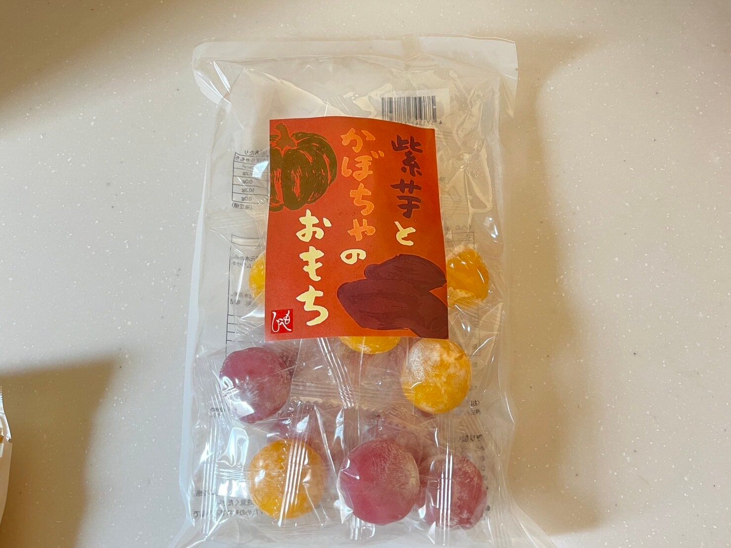 それぞれ個体差はあると思いますが、私が購入したものには紫芋もちが9個とかぼちゃもちが8個の合計17個が入っていました。