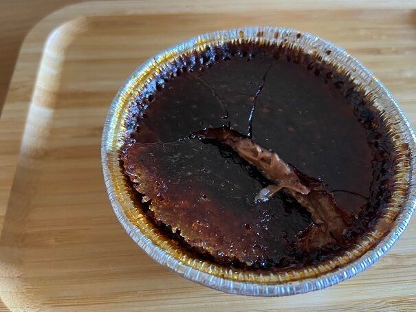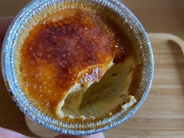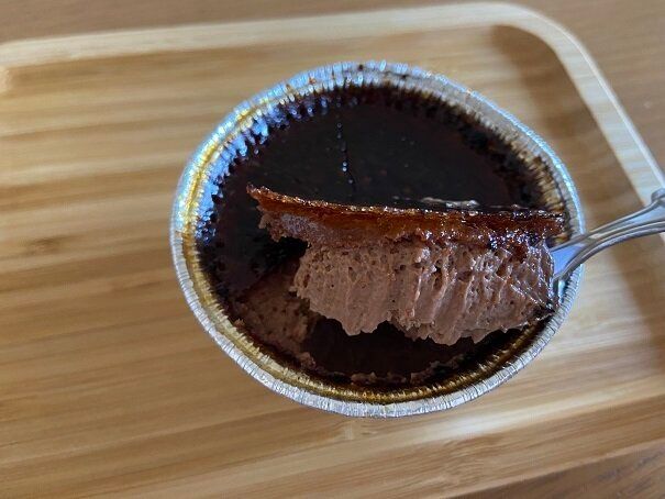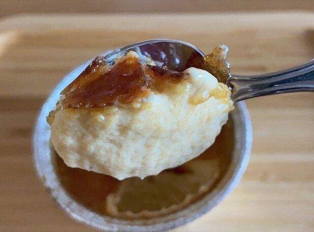 キャラメリゼが意外と分厚くて、スプーンでコツンと軽くたたいてもすぐには割れません・・・笑